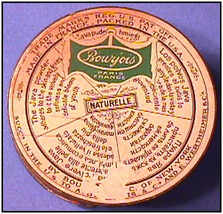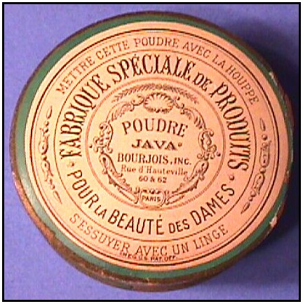 Vintage 1919 Bourjois Java Face Poudre Box~ Early box; very good condition; has some very minor wear and some very light stain spots; empty. |