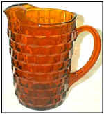 Heavy Vintage Amber Glass Pitcher With Cubic Design~ Very good to excellent condition; no chips cracks or hairlines. |